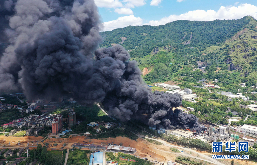 这是7月12日拍摄的福建龙岩卓越新能源股份有限公司火灾现场(无人机照片)。新华社发