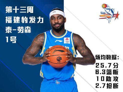 泰劳森曾效力于NBA,2017年来到CBA,2019年加盟福建浔兴SBS男篮。上周的两场比赛中,他带领球队大获全胜。福建队迎来一波5连胜,冲击季后赛占据主动地位。
