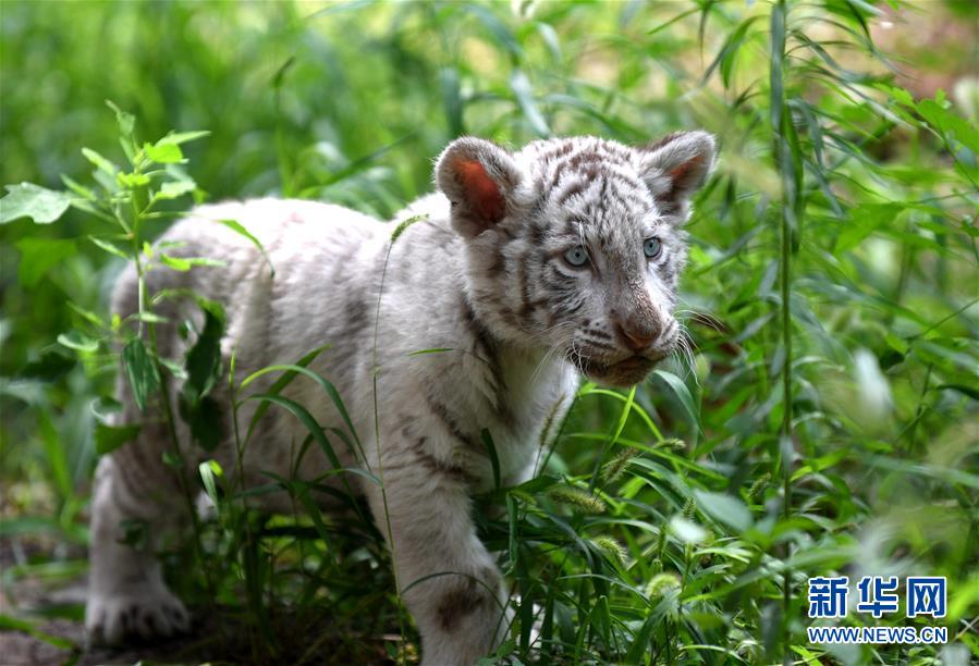 7月13日,“妞妞”在动物园的院子里散步。 河北石家庄市动物园的孟加拉白虎宝宝“妞妞”只有3个月大,由于虎妈妈经验不足,“妞妞”一出生便由动物园工作人员按科学方法人工饲养。目前,在饲养员的精心照料下,“妞妞”正在茁壮成长。 新华社记者 王晓 摄