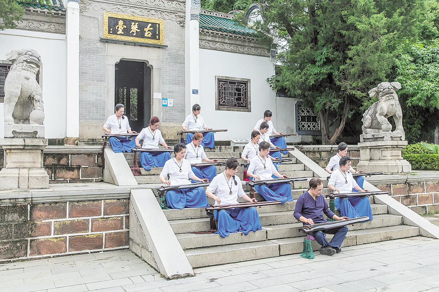 7月13日上午,在汉阳古琴台,由武汉市汉阳区老年大学、洪山区老年大学共同组织的13人团队,与全国各地古琴合奏点共同奏响《我的祖国》、《只要平凡》等琴曲。该活动由中国琴会、华东交通大学孔目湖国乐学院发起,在全国各地设立70个合奏点,南昌为主会场,每个合奏点13人,在云上集体合奏。