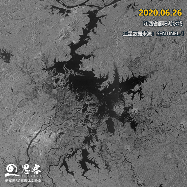 ▲图为鄱阳湖6月26日与7月8日对比图。卫星数据来源:SENTINEL-1
