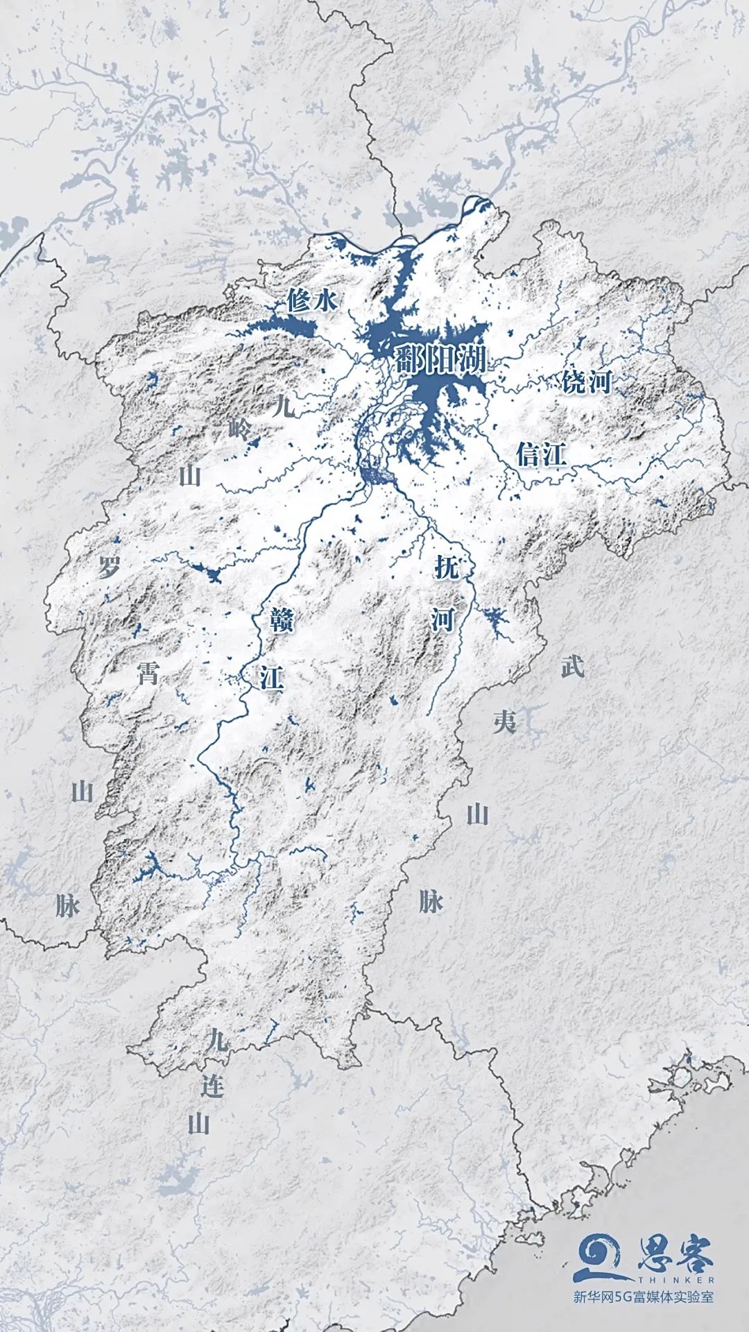 先看下江西省的地势情况。江西省东、西、南三面环山,中南部为山地和丘陵等过渡地形,鄱阳湖平原则位于北部地区,可以看到,鄱阳湖处在整个江西的群山环绕之间,地势较为低洼,容易积水。