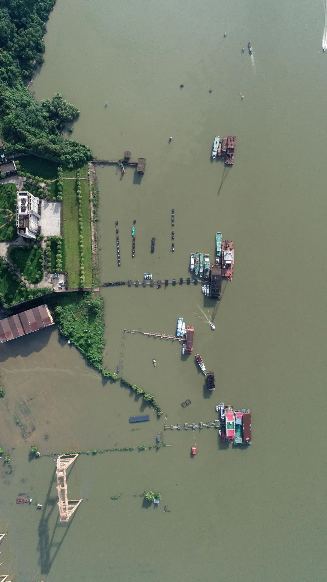 ▲这是7月12日拍摄的位于鄱阳湖边的江西庐山市南康堤,鄱阳湖水位已超过1998年历史极值(无人机照片)。新华社记者 彭昭之 摄