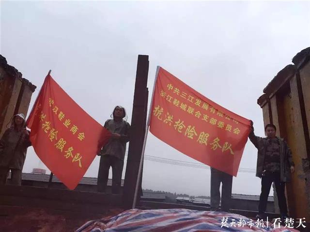2016年武汉遭遇洪水,万桂军也是第一时间报名,在汉江大堤汉正街段值守。万桂军说,那时候虽然降雨量没有今年这么多,但是短时间内暴雨下得比较急,沿河大道出现了渍水。他所在的武汉鞋业商会组成抗洪抢险服务队,驻守宝庆码头等几个闸口。