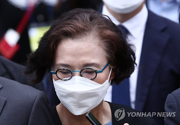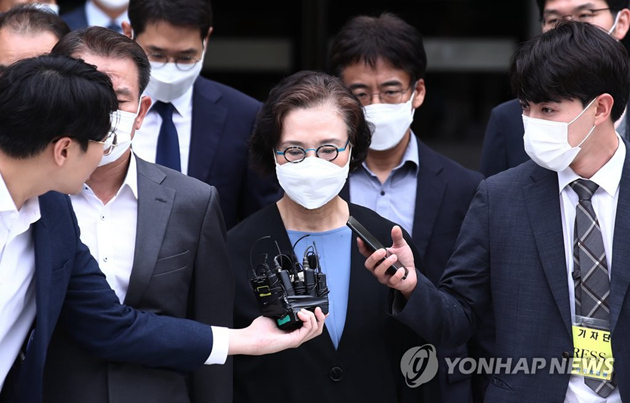 7月14日下午,在位于首尔市瑞草区的中央地方法院,李明姬走出法庭。图源:韩联社