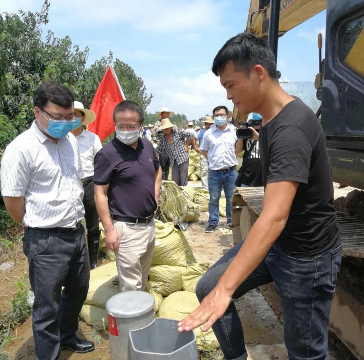 孝感市委常委、统战部部长江浩(中)检查指导河堤脱坡处理情况