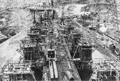 正在兴建的武汉长江大桥。