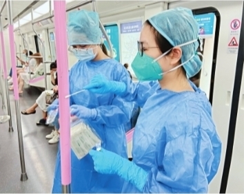 7月22日,参与采样的江汉区疾控中心检验技师沈容用采样拭子对站内手扶电梯扶手、候车区休息座椅、车厢把手等处反复涂抹,将拭子小心放入病毒采样管。完成采样后,这批样本将被统一带回中心完成检测。