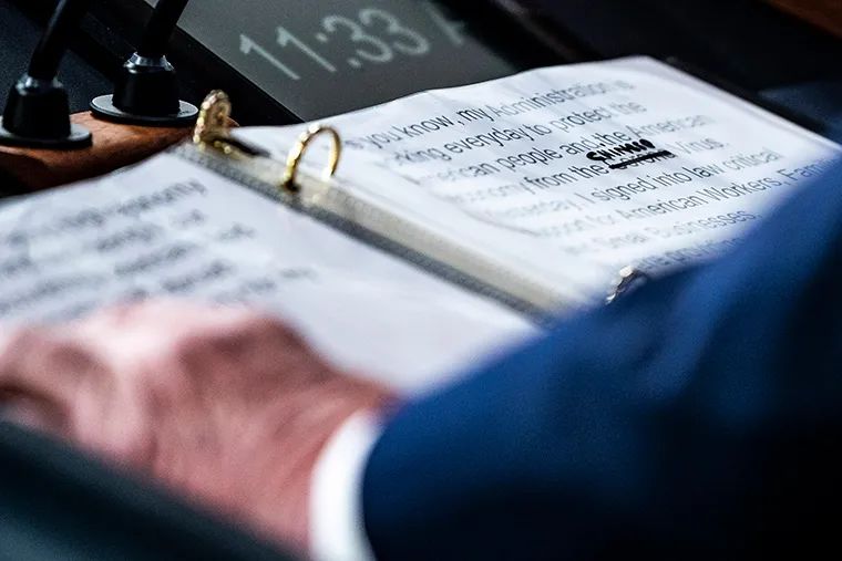 ▲资料图片:早在今年3月,特朗普在白宫新闻发布会上的讲稿显示,稿件中的“新冠病毒(Corona Virus)”被手写修改为“中国病毒(Chinese Virus)”。(央视新闻)