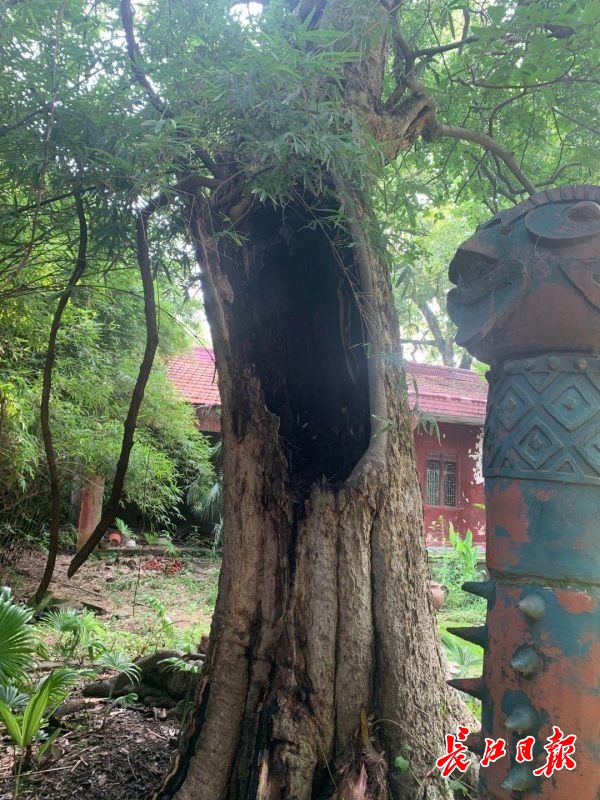 市园林科研院高级工程师史红文现场为古树体检后认为,这棵古树生长环境较好,人为破坏因素少,故长势良好。不过,树干上的这个大洞,将是影响古树健康生长的隐患。