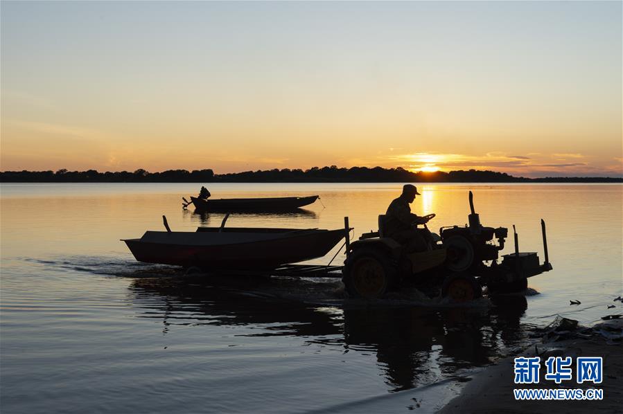 7月24日,渔民在大力加湖中捕鱼归来。 大力加湖位于“中国东极”黑龙江省抚远市,面积28.5平方公里,两岸地势低平,多湿地、草原,湖内水产丰富。夏日傍晚时分,渔民捕鱼归来,美丽画卷映入眼帘。 新华社记者 谢剑飞 摄