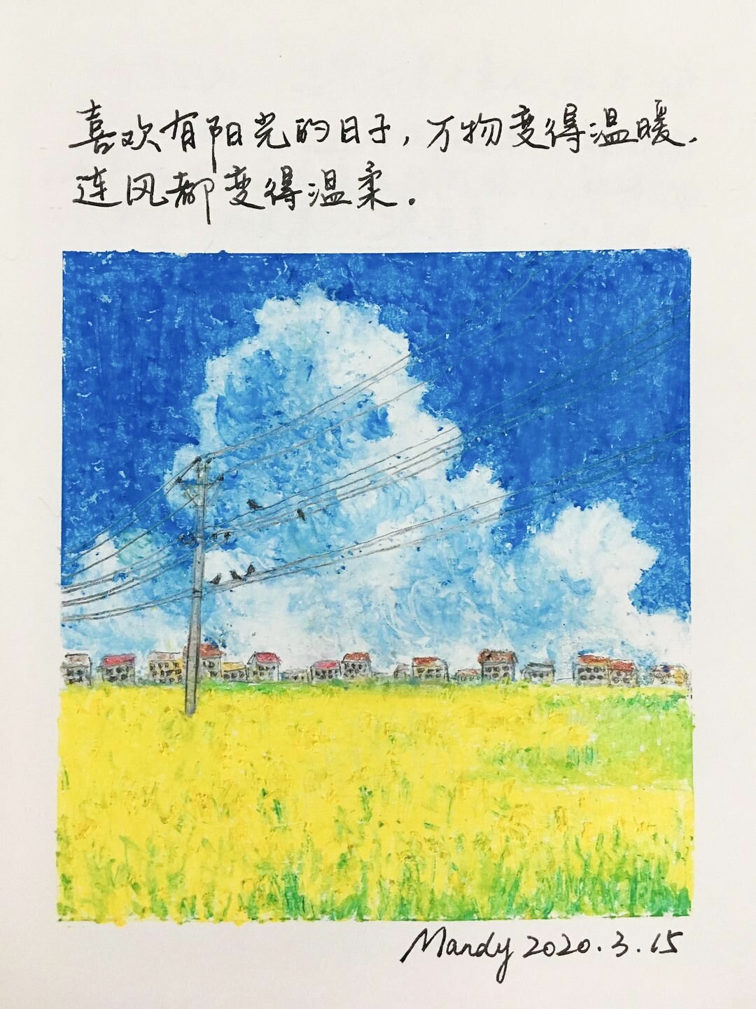 解封后,熊樱第一夭走出家门,“已经从冬夭到了春夭,油菜花都开了。”她跑到文具店,老板出于安全考虑不让她进店,就隔着门板递出油画棒给她。“9块钱买到了一大盒,筒直太激动。”