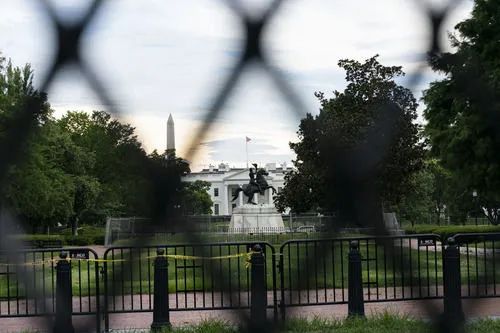 ▲2020年7月23日,在美国华盛顿透过铁丝网拍摄的白宫。(新华社记者 刘杰 摄)