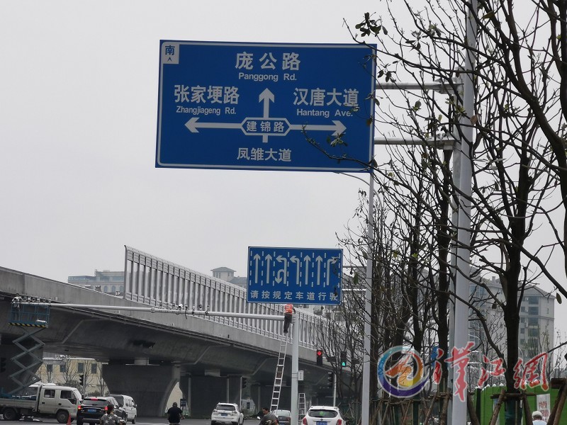 凤雏大桥襄城桥头的车道指引图 全媒体记者李静摄