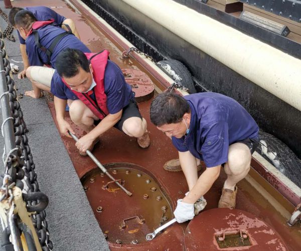 趸船空气舱拆除查漏。