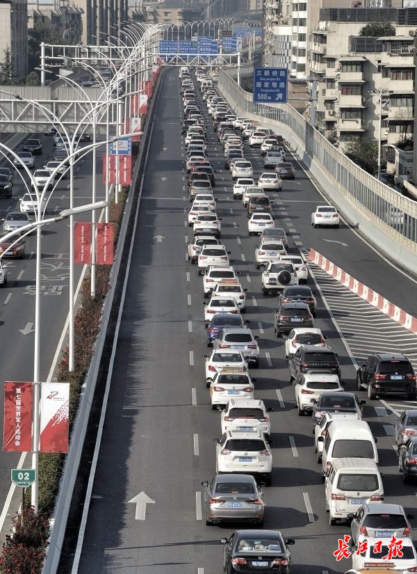 武汉有很多高架桥、立交桥,Y形路口总是快速路上的堵点。从竹叶山立交桥前往二七长江大桥,要经过一个左转匝道。车辆左转时,与右转往汉口火车站方向的车辆在一条匝道上。“其实,我走的方向并不堵,但右转车辆转不过去,就堵住了我的路。”市民王婷婷说,“以前,总有车辆等不及,开到匝道口加塞。这样就更堵了,你也不让,我也不让,都过不去。”
