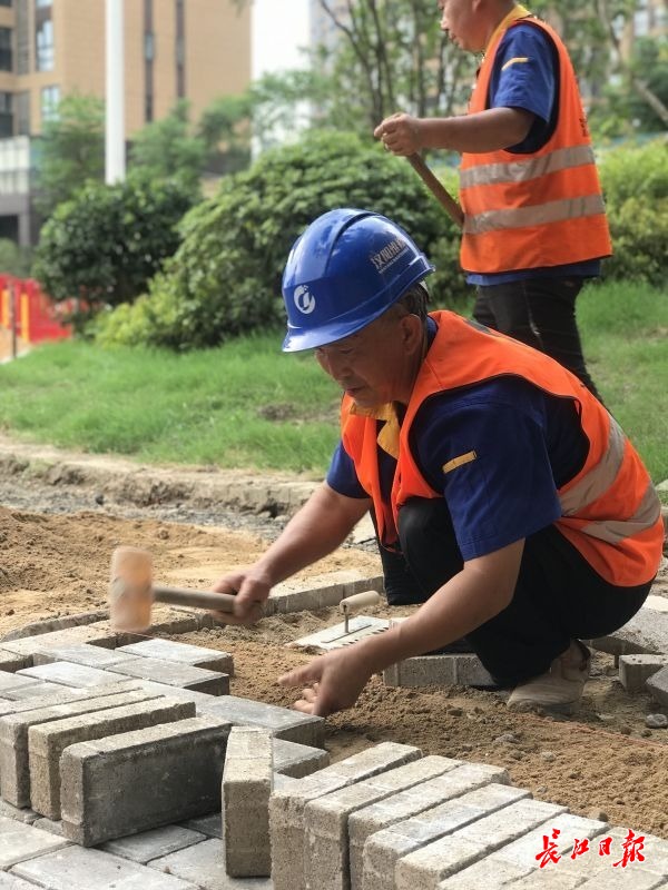 “衣服都湿透了,为了学生伢们上学,要赶在这个月做完。”现场施工人员告诉记者,附近的四新中路有晴川初级中学和英才幼儿园两所学校,家长接送学生时长期将车辆停放在芳草五街的人行道上,两边的人行道都有不同程度的破损和下陷。施工人员已在此施工一周,逐段修复受损的人行道:先清除弃料,再填充水泥砂浆和混凝土,最后铺设人行道步砖和路檐石,“这里需要修复的面积约300平方米,预计本周内可以完工。今天深夜我们还将修复芳草路与四新大道交会处以及王家湾附近的车行道,修复面积达600平方米。为不影响交通,车行道只能晚上施工,大家都蛮辛苦,但毫无怨言。”