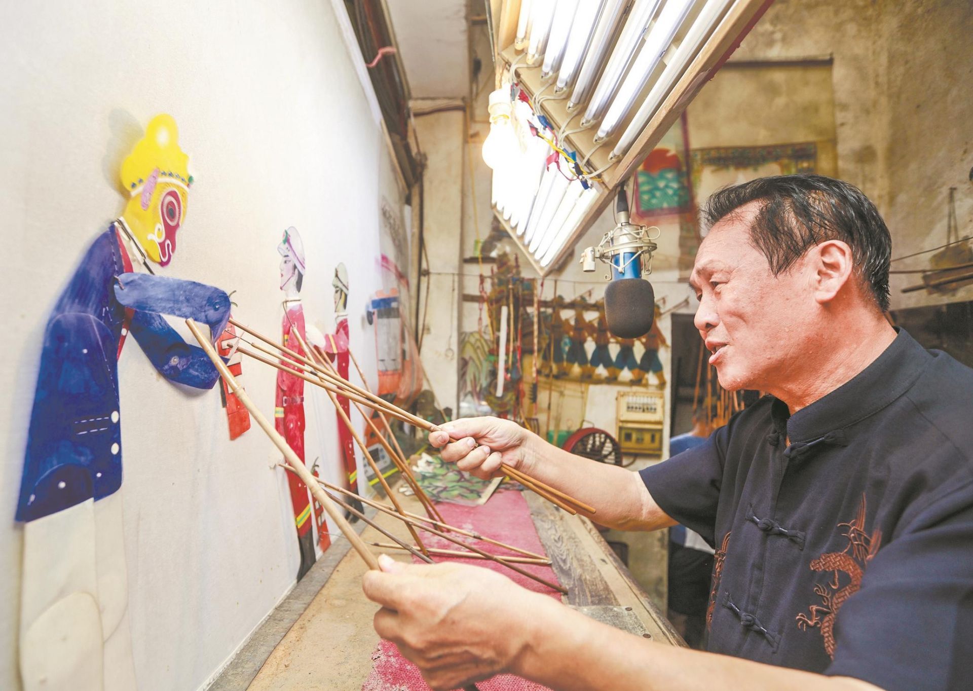 秦礼刚表演皮影戏