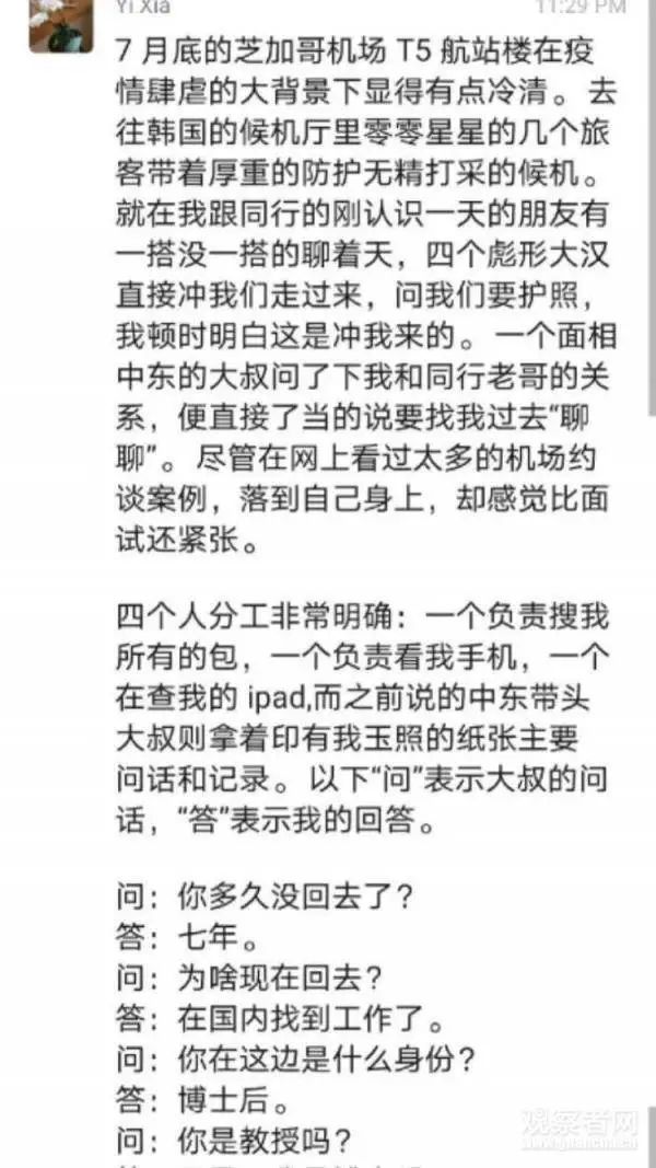 当事人称,在美国芝加哥机场遭遇执法人员的“有罪推定”执法。
