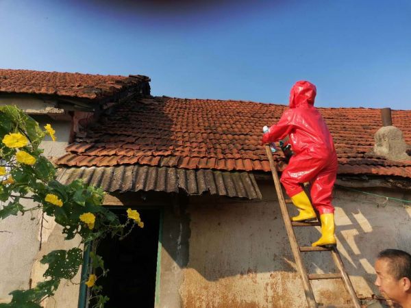 上房檐捅马蜂窝。通讯员李鹏程 摄