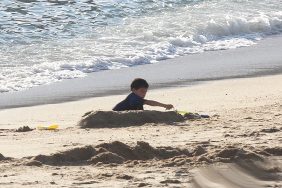 郭晶晶的妈妈则充当帮手,帮2位孙子砌沙子城堡,公公霍震霆则在椅子上晒日光浴,一家人非常温馨玩耍。之后,霍启刚又到厨房里去找些好吃的东西作为晚餐,对一家人照顾得非常周到,相信他们是度过了一个愉快的下午。