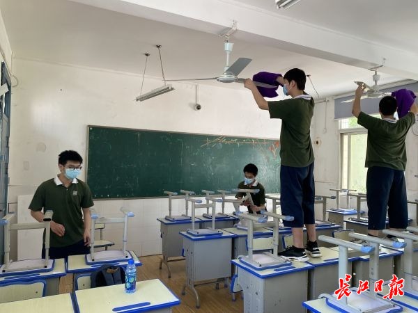 武汉市翠微中学,学生主动到校打扫教室。记者杨幸慈 摄