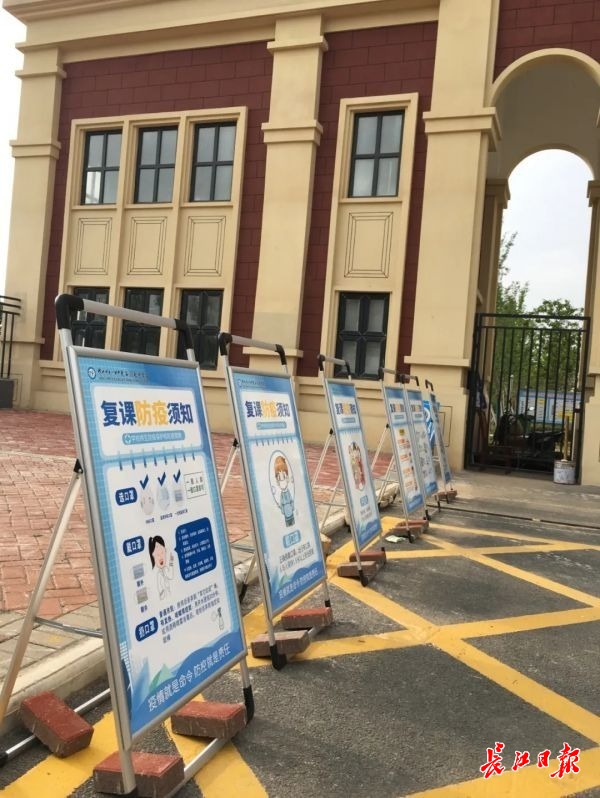 华师一附中光谷汤逊湖学校门前的复课防疫展板。学校供图