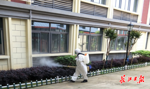 武汉市二桥中学,每天一次校园消杀。学校供图