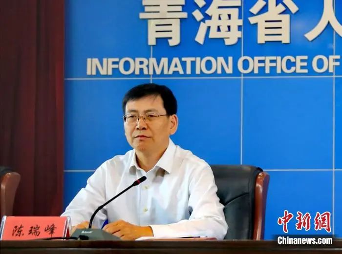 图为青海省委常委、宣传部部长陈瑞峰(中)主持新闻发布会。