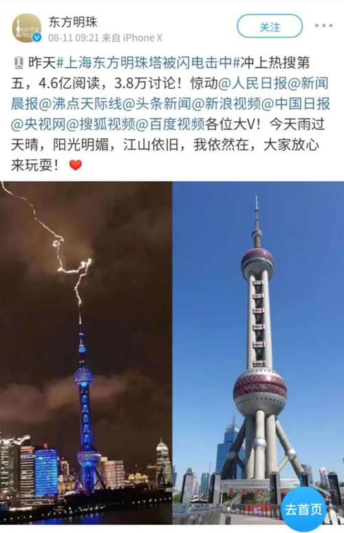 东方明珠被雷电击中”引发网友和媒体的转发热议