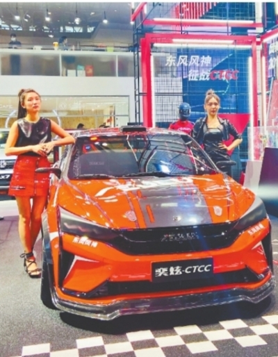 车展现场展示的东风eπ新能源高性能轿跑概念车。