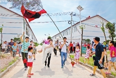 2012年7月10日,村民在东西湖区柏泉街彭家湾办喜事。
