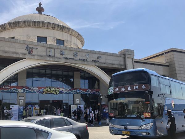 来自河南的旅游团大巴车到达木兰草原景区。通讯员鲁明 摄