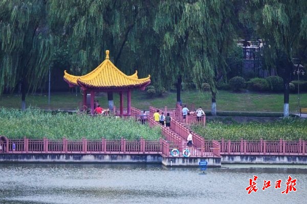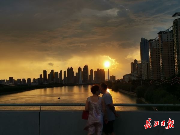 在汉口菱角,突然刮起的凉风迅速驱散了白天的闷热,让人感到格外舒爽,人们走在街头和湖边,感觉格外惬意。