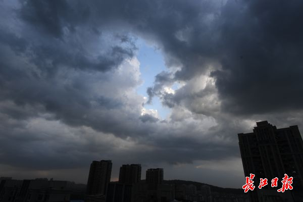 长江网8月16日讯 8月16日17时50分左右,武汉市上空突然风起云涌,乌云遮住了太阳,5级大风突起,刮向城市的每个角落,15分钟后大风停息,人们又开始了正常的户外活动,天空却留下多彩的云团,瑰丽的晚霞让许多人驻足观赏。 (记者金思柳 詹松 高勇 摄影报道)