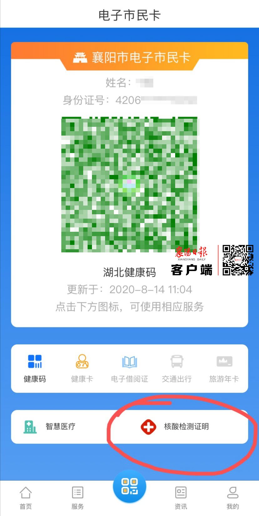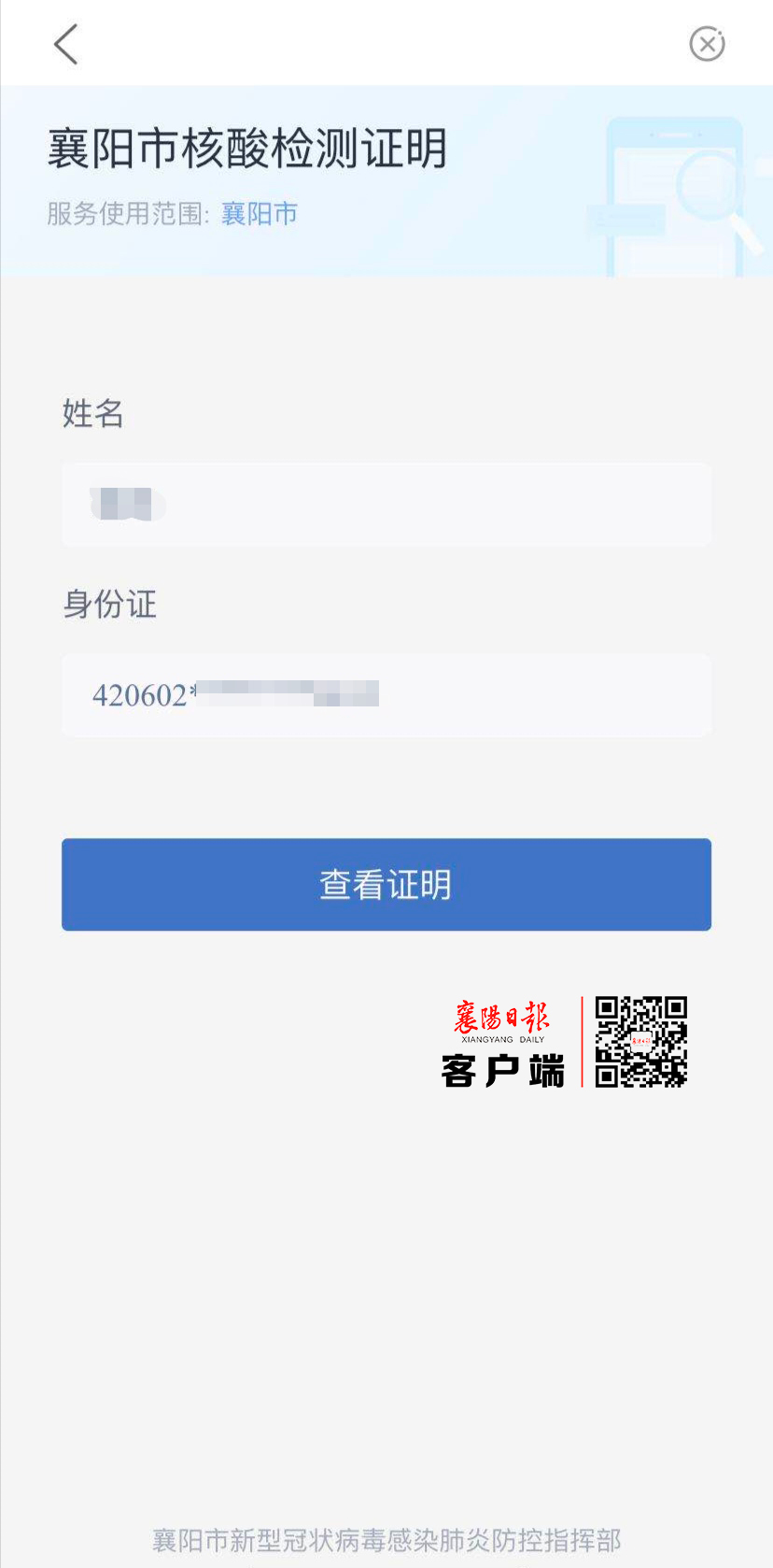【襄阳政府网消息】18日,记者从市政务服务和大数据管理局获悉,i襄阳APP上线“核酸检测证明”功能,只要市民登陆APP,领取市民电子卡后,可在线查询核酸检测结果。