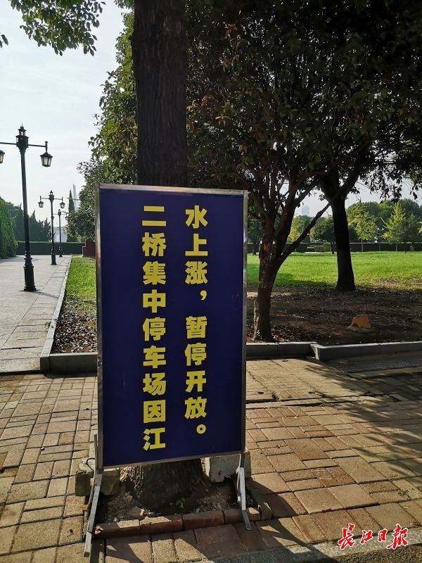 记者注意到,汉口江滩公园内路两边划线可以停车的区域,均可以正常停车,但二桥下的集中停车区域的水位还未退,还不能停车,有工程车还在旁边对设施进行清理。在二期入口处,竖立着一个醒目的告示,告知市民二桥停车场暂未开放,提醒广大市民合理停车。