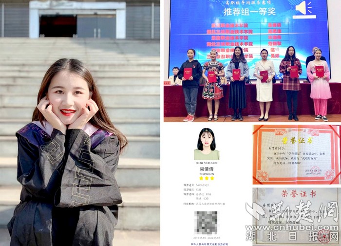 旅管17303班学生易倩倩及所获荣誉。学校供图
