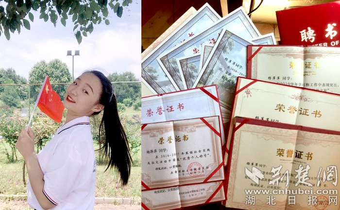 酒店管理18202班学生杨萍萍及所获荣誉。学校供图