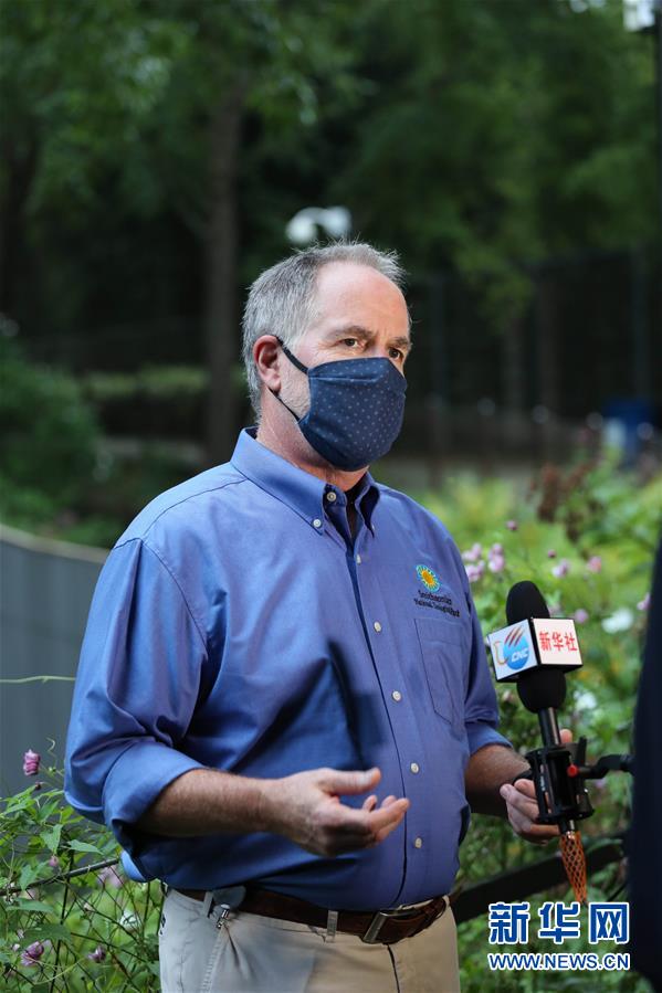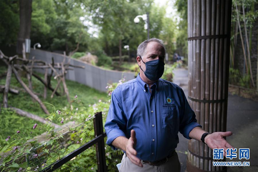 8月22日,在美国华盛顿,美国史密森学会国家动物园和生物保护研究所主管蒙福特在大熊猫馆旁接受采访。 新华社记者 檀易晓 摄