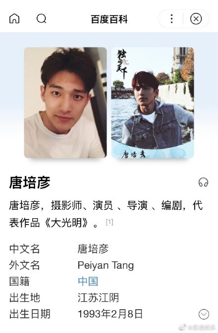 百科上可以查到唐培彦是一名演员,导演,编剧等身份,也是一位有颜值有才华的90后帅哥。