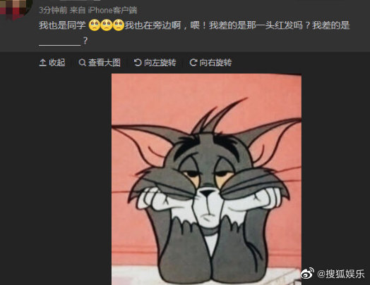 之后,周冬雨同学发声说:“我也是同学,我也在旁边啊,喂!我差的是那一头红发吗,我差的是……”周冬雨同学的发声疑似否认了周冬雨和唐培彦的恋情,原来周冬雨不是跟唐培彦约会,而是跟同学们的同学会啊!