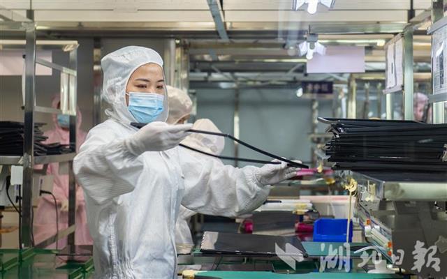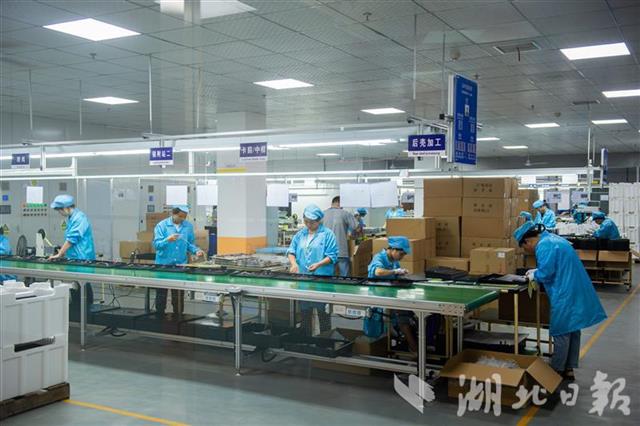 图为:8月24日,位于黄石开发区的天玑智谷产业园精密模组生产车间,工作人员正在忙碌。
