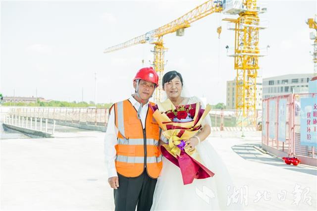 湖北日报讯(通讯员许名波、付小杰)“摄影师,麻烦帮我们拍一张与塔吊合影的婚纱照,我们大半辈子以工地为家,日夜围着塔吊转,这张照片对我俩,意义可不一般!”8月24日,塔吊信号工夫妻老孙在上海人工耳蜗生产基地二期项目“工地鹊桥来相会 圆梦工友婚纱梦”的拍摄现场感慨。