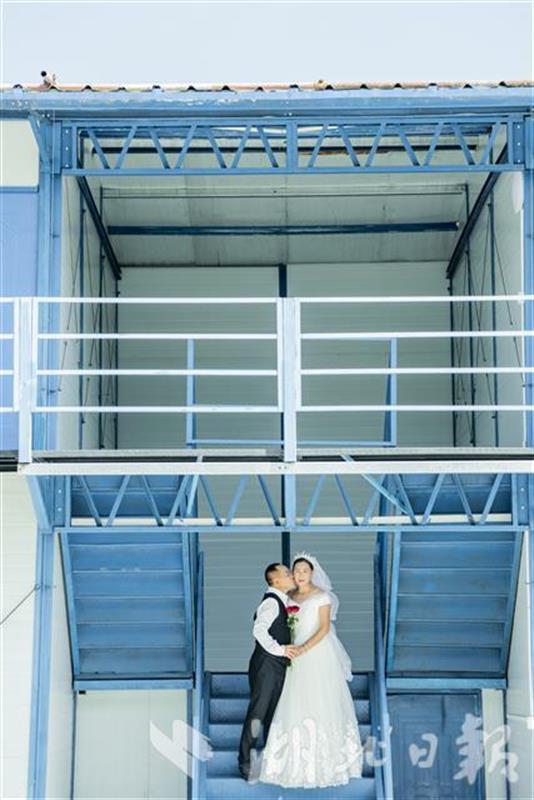 项目机电工长马渝海夫妻主动给摄影师指定拍摄背景,如塔吊、水电箱、工地施工现场、工地生活区等。今年58岁的马渝海,从事建筑行业39年,还有两年就退休了。“这是一组非常具有纪念意义的婚纱照,婚纱照哪个影楼都可以拍,可是与承载着我整个青春、半个人生的工地为背景拍摄,意义非凡,这是我收到的最温暖的七夕礼物,也可以说是退休谢礼,即将离开建筑工地,很是不舍。”马渝海有些哽咽。