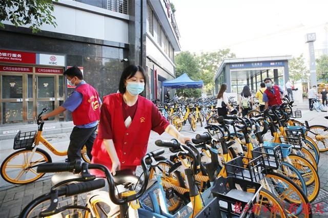 当日早高峰时间段内,除了铁机路站,60余名姚婕志愿服务队成员、社会志愿者、单车企业运维人员,同时前往王家湾站、长港路站、王家墩东站等站点单车较多的出入口,现场引导市民乘客有序停放单车、归整随意停放车辆,畅通文明出行路。