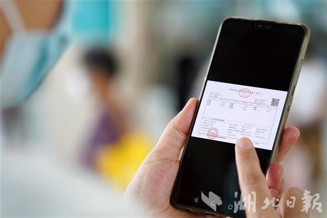 湖北日报讯(记者龙华、通讯员刘坤维、郭健英)8月25日下午,患者吴女士办理完住院结算后,使用就诊卡在医院自助机打印清单,通过手机扫描清单上的二维码,立即收到了一张她的住院电子发票。这是华中科技大学附属协和医院正式开出的第一张住院医疗电子票据,该院也成为湖北省首家上线住院医疗电子票据的医疗机构。