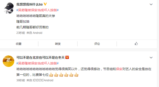 网友们纷纷表示自己被笑道了,一方面表示心疼吴奇隆,也不知这突如其来的心理阴影面积有多大,另一方面还不忘记为保安人员的敬业点赞。