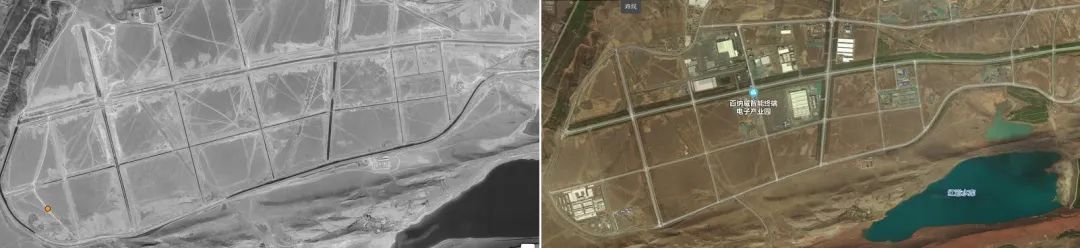 左边为“BuzzFeed”给出的卫星图片,右边为“赤”查询百度地图后截取的图片