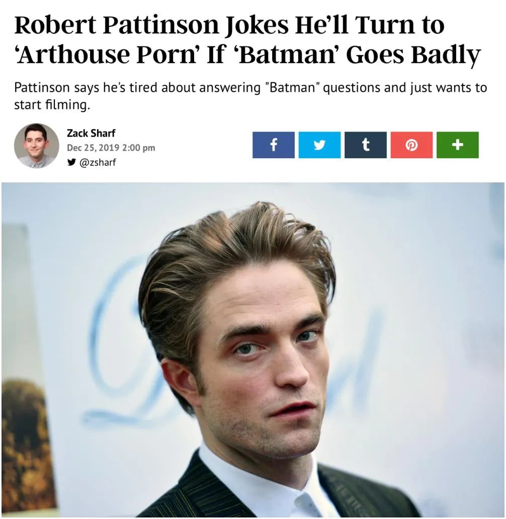作为新版蝙蝠侠人选,罗伯特·帕丁森为了摆脱《暮光之城》的形象,曾放话:要是拍砸了,我就去演情欲片。